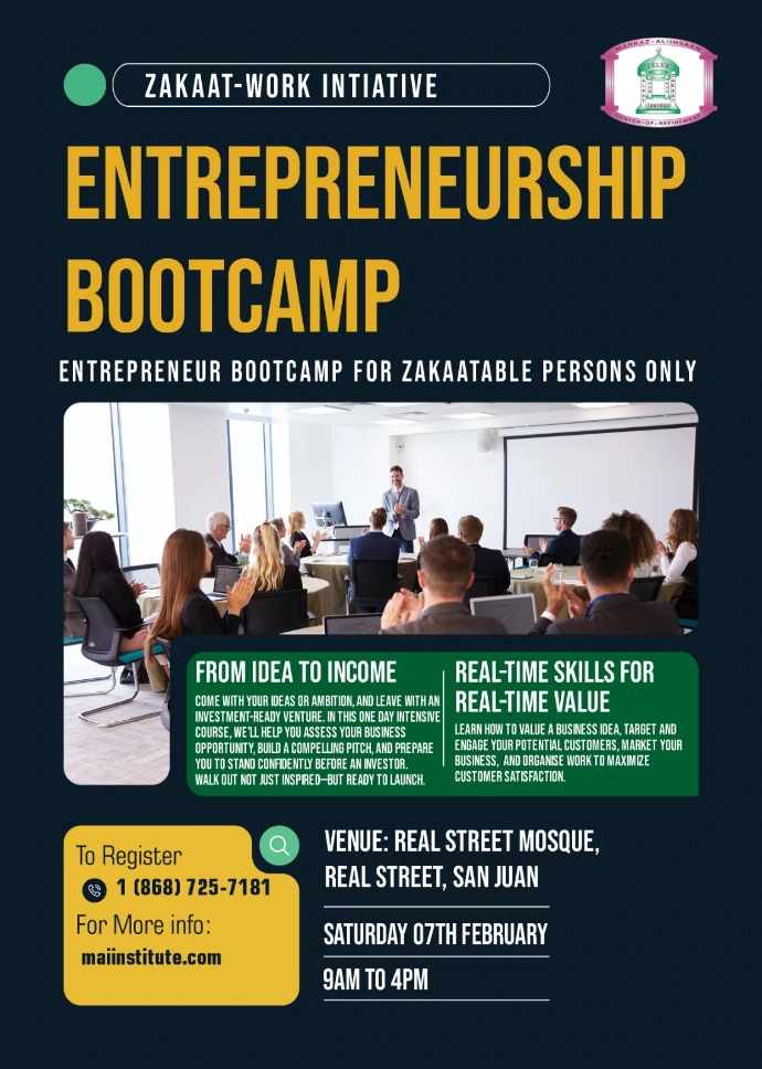 We are pleased to work with the Zakaat-Work Initiative to host the Entrepreneurship Bootcamp - for all zakaatable persons.